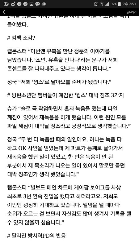 애들이번인터뷰봤어? 둥인가