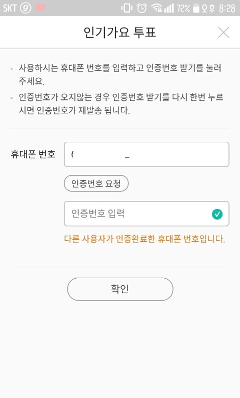 인1가 투표하려고 서양수박이랑 아1지톡 깔아서 폰번호 인증하는데 이렇게뜸..