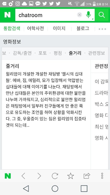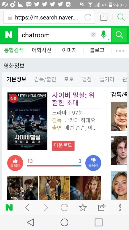 영화야!대충줄거리는저런거고↑ 사이버공간인채팅방을현실세계처럼표현한영환데'자살'이란소재를다룬데!!!