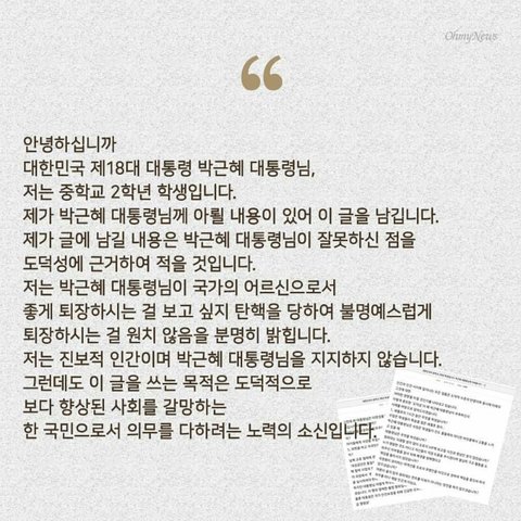 중학교2학년이 박근혜대통령님께