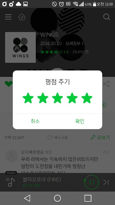 이거 방탄소년단 윙스 앨범 들어가면 초록별 있는데 우리 평점 3.8이야 ㅠㅠ 우리가 쭉쭉 올려보자!!!@!!!