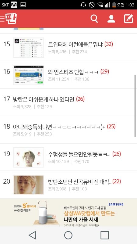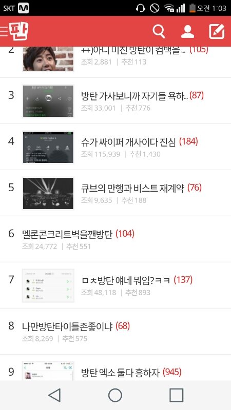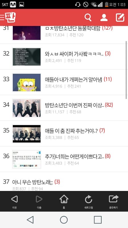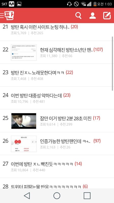 방탄 글 올라오는거 좋은데 뭐든지 적당히 해야지