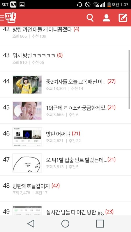 나 방탄 안싫어한다고 근데 타돌 글도 보고싶다구ㅠㅠ