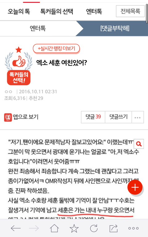 세훈이 베플조작당함