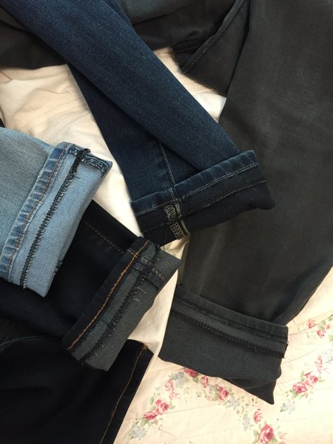 방금 세탁소에서 4벌의 청바지를 줄인걸 갖고왔는데요