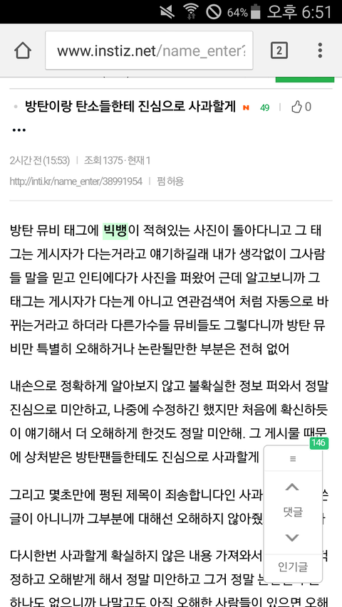 ㅅㅂ 알고 말해라 좀 방탄 깔려고 애쓴다