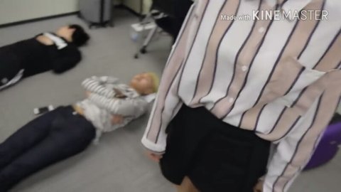 (얼굴 스티커로 가려진거 서은광임) 도대체 어떻게 돌리면 애들이 죄다 바닥에서 자냐...
