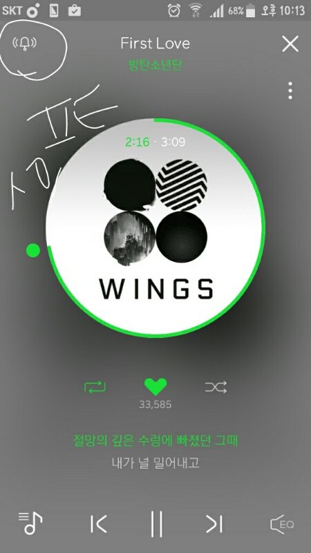 저거 원래 초록색으로 켜 있었는데 누르니까 윙스 앨범이 발매되었습니다 하면서 다시 안 켜지는데 괜찮은 거 맞지 ?