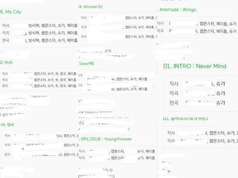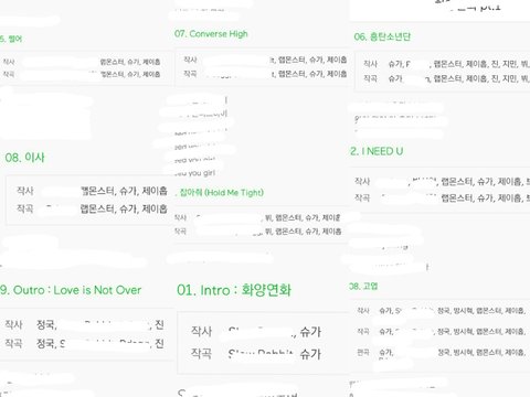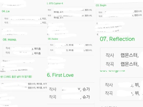 진짜 대단한게 랩라는 다있어.. 흥탄비트가 윤기가 호석이 주려고 만든거잖아.. 그거 듣고 진짜 놀람ㅠㅠㅠㅠㅠㅠㅠㅠ 보컬라인도 조금씩 작사하고 있고 더늘어서 랩라처럼 전곡에 참여했음 좋겠다ㅠㅠㅠㅠㅠㅠ 다들 늘고있는거같아서 좋아♡