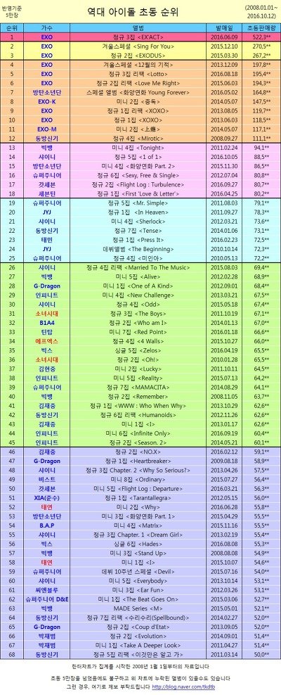 역대 아이돌 초동 순위 최신ver. (샤이니 진입)