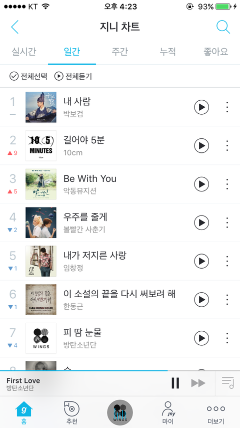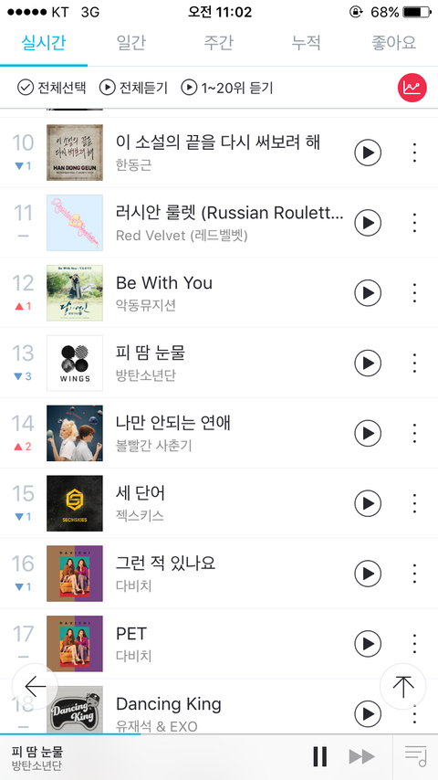 +) 오늘 13위 찍었더라.. 심지어 같은시간에 피땀눈물 포함 4곡외에 11곡 전부 차트아웃까지했음