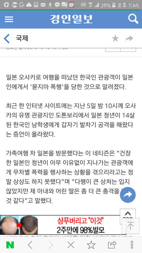 밖에 돌아다니는데 부모님이 옆에 있었는데도 13살짜리 애를(14살인가? 암튼 10대였음) 일본인이 줜나 팼데 ㅋㅋㅋ 또 라이어님??
