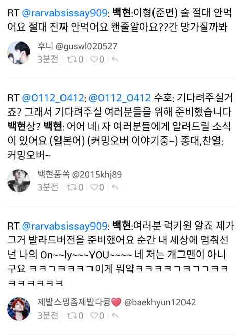 백현이 오늘 넘 신났어요? 후기봐 ㅋ