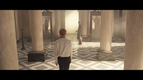 뮤비에 나온 왼쪽 검정 조각상은 조부를 죽이고 메두사 머리를 벤 페르세우스의 조각상.