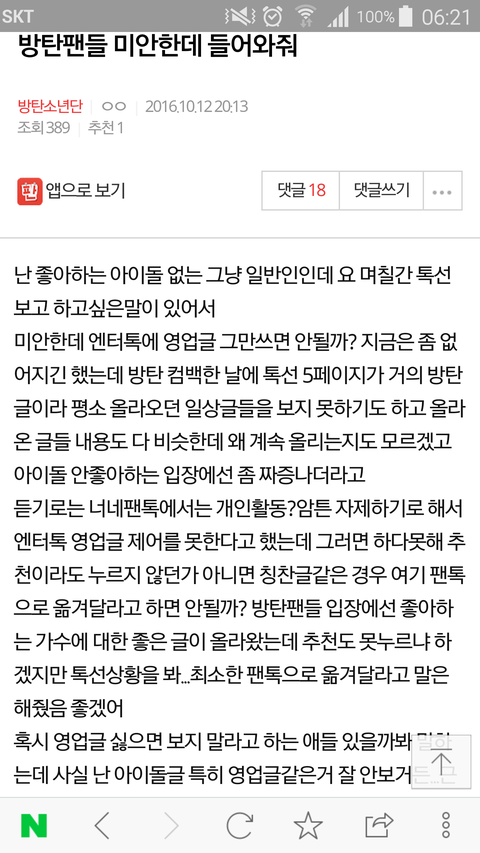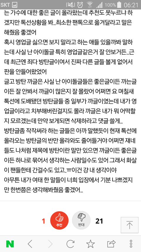 영업글을 우리가 썼다는 증거도 없는데 우리 팬톡 와서 이렇게 글 올리는 거 너무 싫다