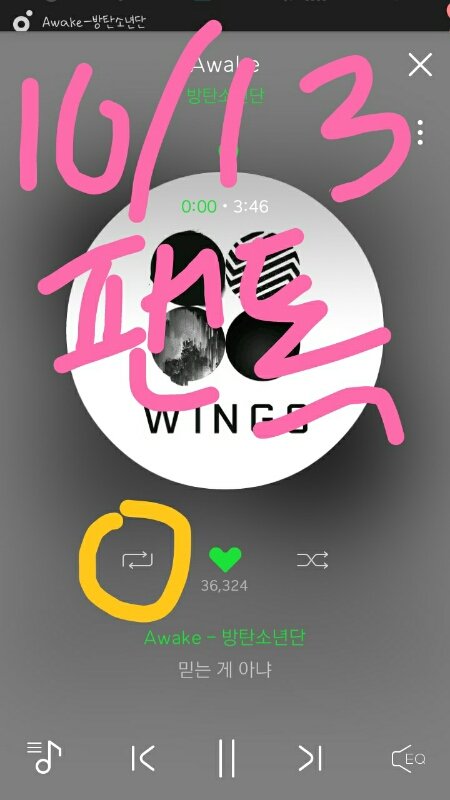 저거 노란색 동그라미 친걸 누르는 거야? 플레이리스트에 반복재생이 아니구? 이때까지 그거 눌렀는데..........????????
