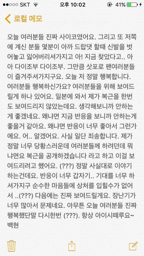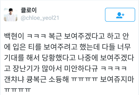 백현이 복근 보여주겠다고 했는데 ㅋㅋ