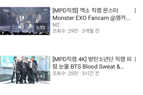 3개월전 몬스터 직캠 vs 3시간전 방탄 직캠