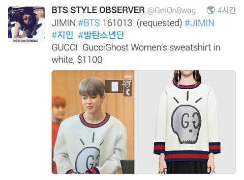 아까 라디오보고 지민이가 이제 구찌 입고다니네 많이컸다 했더니 ㅠㅠ 태형이가 선물해준거였어ㅠㅠ