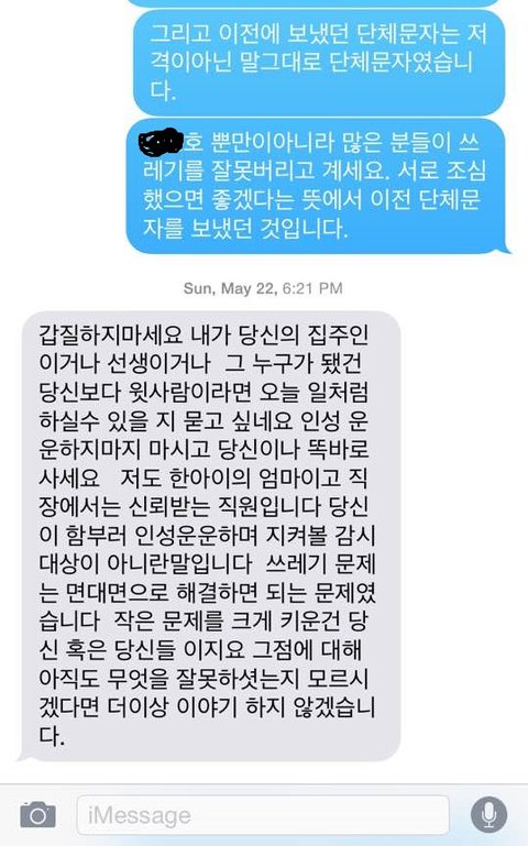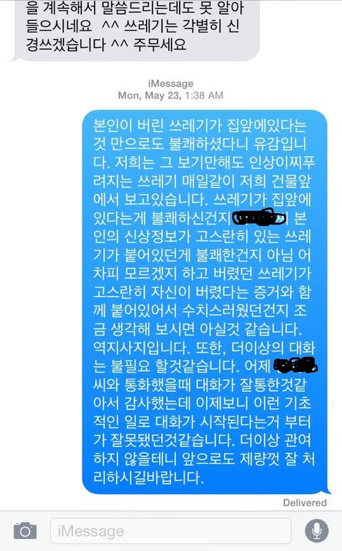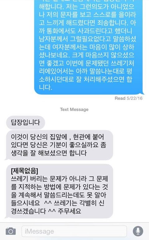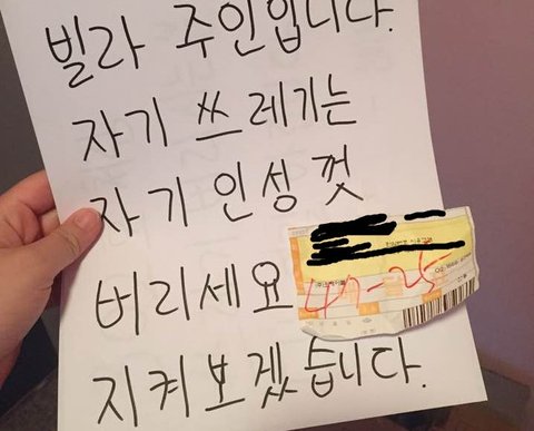 그래서 언니는 고모부보고 쓰레기 이제 치워주지말라고 울면서 그 쓰레기를 집문앞에 놓고 박스에 붙은 송장을 붙혀서 그 집 문앞에 붙여 놨다고 해요.
