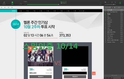 지금 투표수 차이도 별로 안나고 음원은 우리가 저분들보다 약해!!! 제발 투표좀 하자 ㅠㅜㅠ