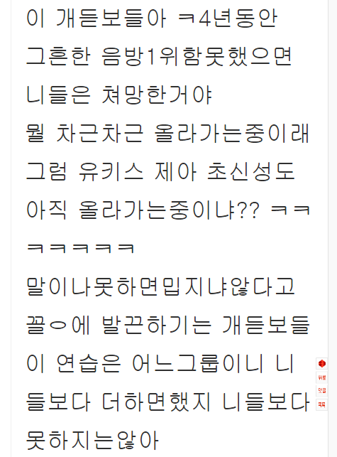비투비가 차근차근 올라가고 있다고 팬들이 백날 옹호해 봐야 싫어하시는 분들은 끝까지 싫어하실 거니까 별 다른 수도 없는 것 같지만 제발 망투비라는 단어까지 언급해 가면서 비투비의 노력을 짓밟지는 말아 줬음 좋겠어.