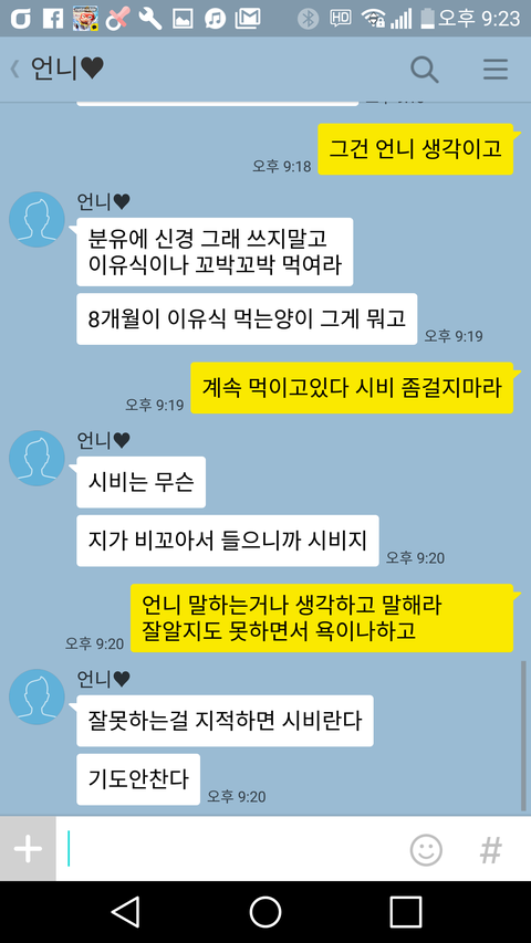 언니란 사람은 쓰니가 미워죽겠는 사람같이 얘기하네요 저렇게 신경 곤두서있는 사람하고 뭐하러 카톡하나요 수다떨 상대가 아닌 듯...