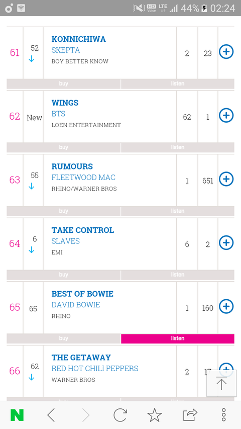 싸2는 싱글차트에서 1위한거고 앨범차트에서는 방탄이 최초로 62위에 들어감