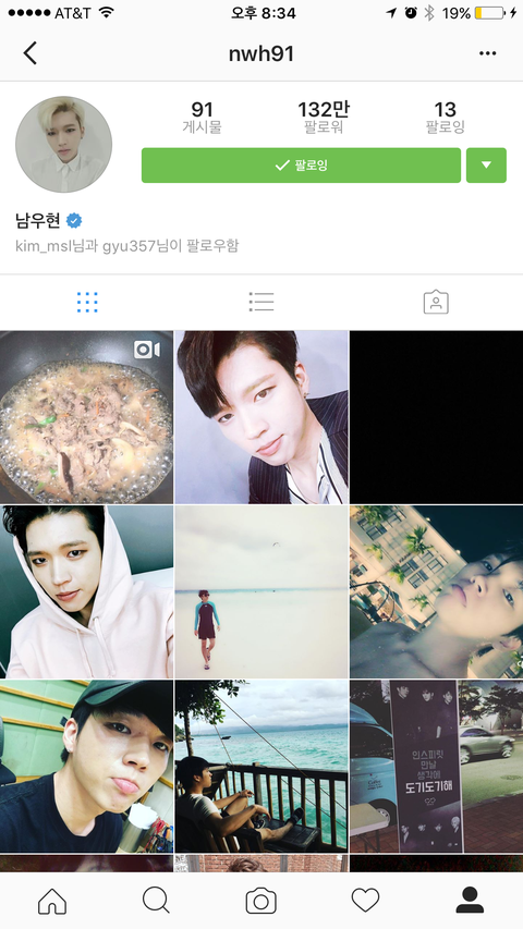 우현이 인스타 체크표시 됐다!