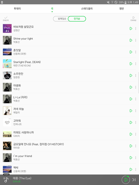 멜론 장르별로 볼수있는거 참 좋은거같다..