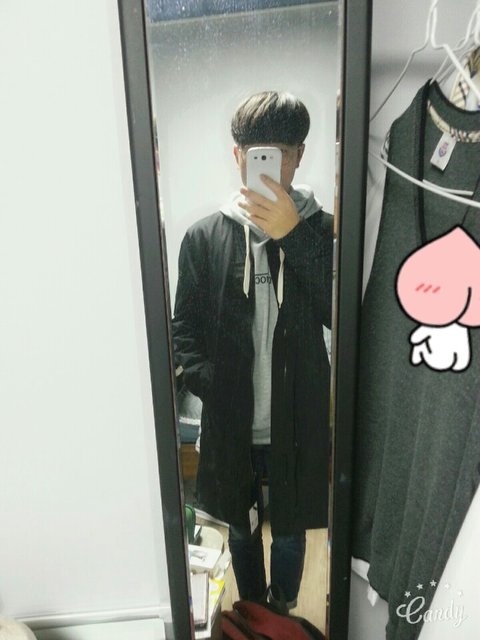 쫌이따 여사친만나러가는데 위에 긴 검정색 겉옷 첨사서 입어보거든