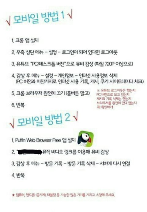 밑에부터는 타그룹에서 스밍 방법 정리한건데 잘 되어 있는거같아서 올려. 혹시 논란될만한거면 삭제할테니까 알려줘!! 그리고 이미지 저장해서 보면 조금 더 선명하게 볼수있어~