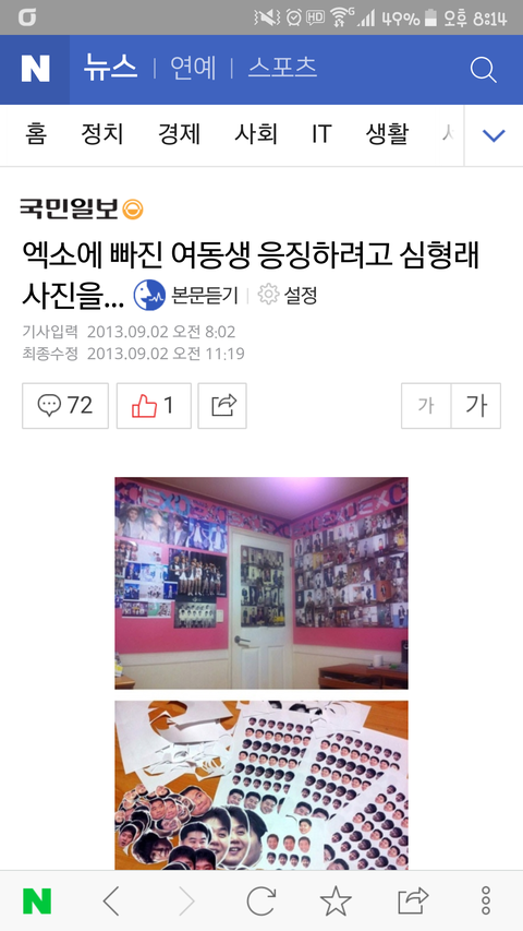 야 그오빠 기억나냐 엑소팬여동생 방 김유식사진 도배한새끼 ㅋㅋㅋㅋㅋㅋ