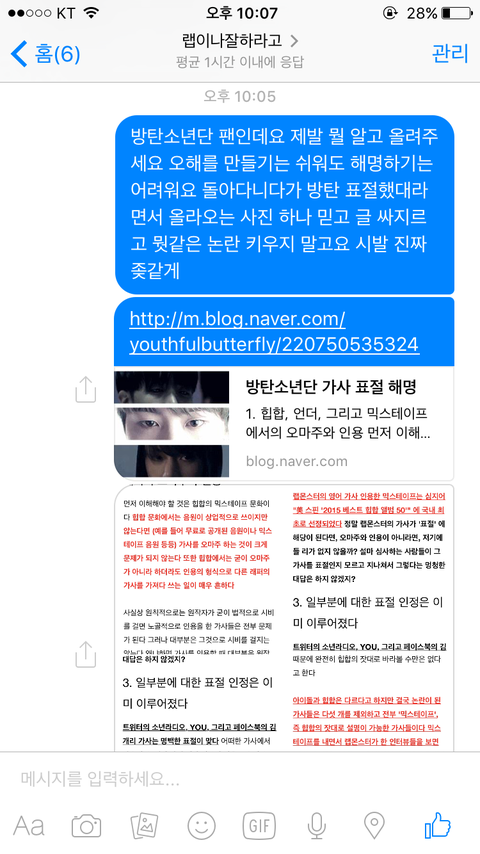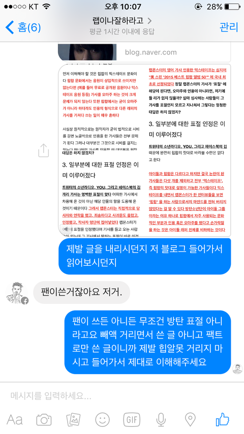 이삐들 그 얼굴책에 글 올린 사람한테 페메했어