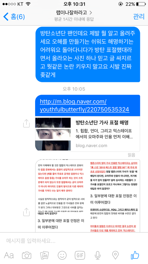 처음엔 저렇게 또 욕먹는 상황이 너무 화나서 욕했는데 그뒤로는 욕도 안하고 나름 평정심 지켜가면서 말했는데 나 잘한거지 근데 저뒤로 답이없다 계속 바로바로 보고그랬는데