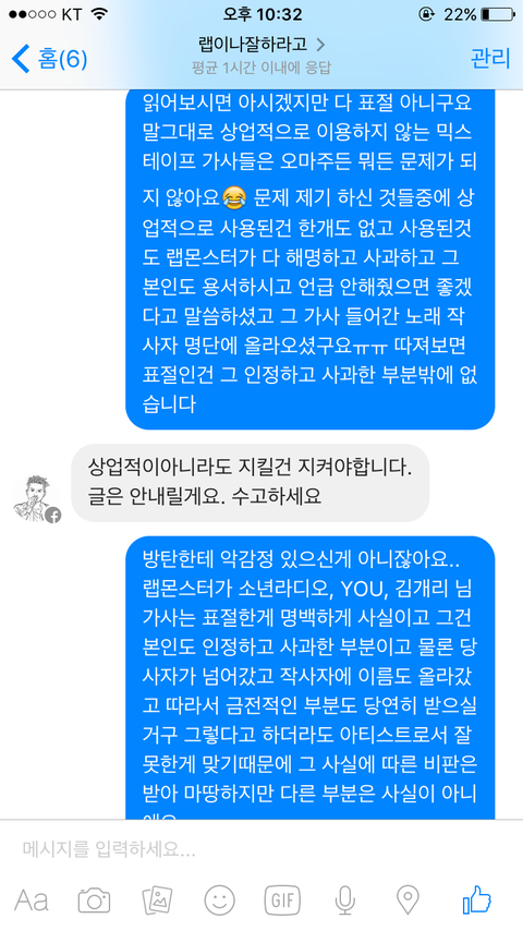 이삐들 아까 얼굴책그사람한테 페메보냈다는 앤데