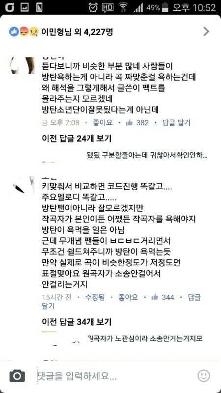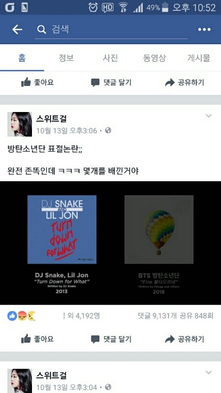 어느 한페이지가 불타오르네가 몇몇 노래랑 비슷하단 영상을올려