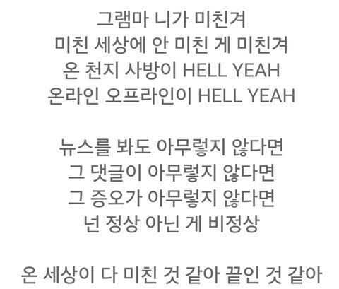 삘 받아서 써봄 얘낸 중소라 그런가 '힙합' 아이돌이라 그런가 사회비판곡 내일이 없게 잘쓰는거 같아