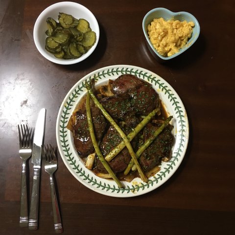 10.양송이 버섯 양파 아스파라거스 버터넣어 A1 소스에 볶아 올린 와규 스테이크~ 사이드 메뉴는 넘 사랑하는 맥 앤치즈~