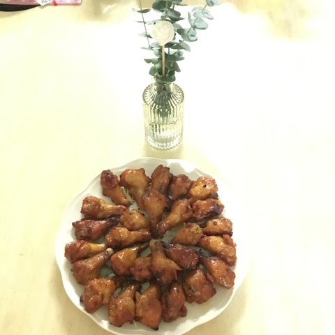 우유에 재서 소금 후추 밑간하여 바베큐 소스 에이원 소스 아가베 시럽 넣고 오븐에 구웠어요.