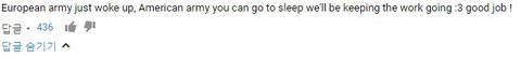 '유럽 아미들 일어났다. 미국 아미들 이제 자러가. 우리가 조회수 올릴께.. 수고했어.'