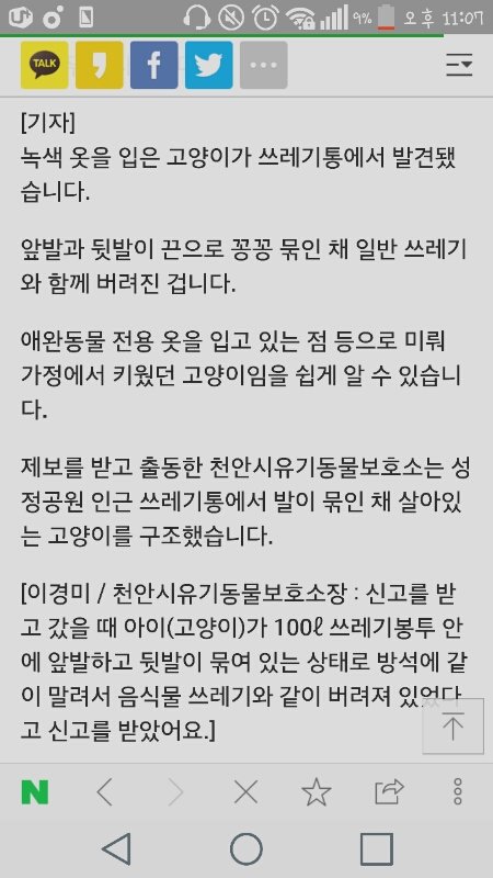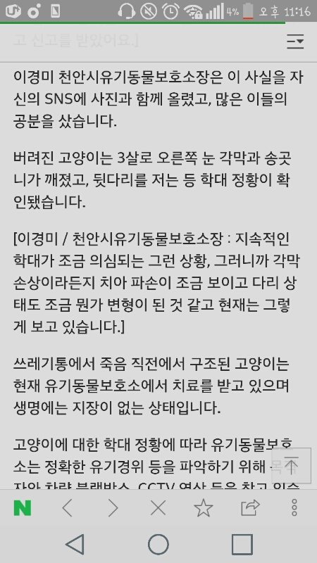 고양이를 키우고, 동물을 좋아하는 쓰니는 진짜 저사람의 행동이 이해가안간다 저건 사람이 할짓이 아닌거잖아 저 기사보는 내내 눈물나올뻔 했다 키우기싫으면 처음부터 키우지말던가 버려도 저렇게 버리는건 아니잖아 저건 아니잖아 고양이가 뭔죄야 부담이되고 더이상 키울 수 없으면 다른 사람에게 입양이라도 보내지 저렇게 버리는건 아니잖아 눈물난다 저 기사보고 우리집 고양이 보니까 그 고양이가 너무 불쌍하고..내가 고양이를 키우지않더라도 저건 진짜 너무 화난다. 난 솔직히 저렇게 고양이 죽기직전까지 만든 그사람도 똑같이 당해봐서 어떤 느낌이었는지 알게하고싶어