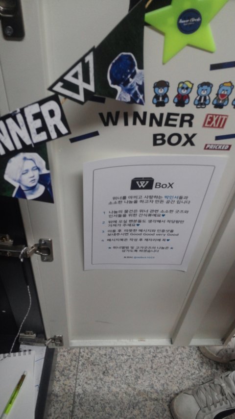 인서들이 저기 가서 자기가 가지고 있는 굿즈나 위너 관련 물품들 나눔하고 다른 인서들이 나눔해준거에서 원하는거 가져올 수 있는거야ㅎㅎ
