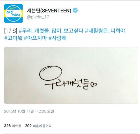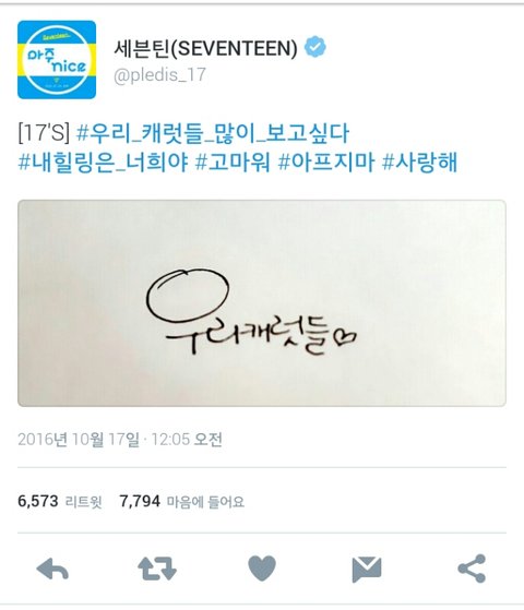 아는 사람은 알다시피 세븐틴은 2012년부터 데뷔예정이었던 팀임ㅠㅠ 하지만 엎어지고 엎어져 2015년 겨우 아낀다 라는 곡으로 데뷔하고 현재까지도 활발히 활동중임! 이 글을 쓰는 이유는 딱히 없음 온갖 우여곡절과 고생을 겪고 데뷔해서 그런지 그냥 정말 팬들을 아껴주고 생각해준다는 게 정말 티가 많이 나는 그룹이라 너무 예뻐서 한번 써봤음