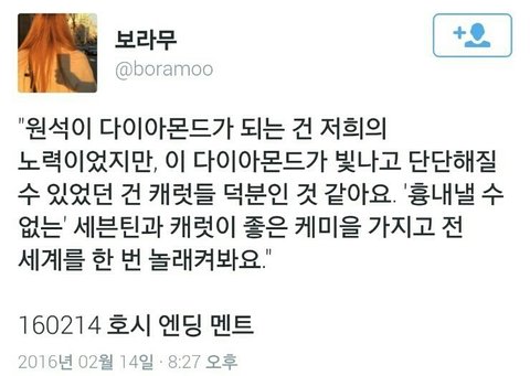지금처럼 초심 잃지말고 팬들 생각하면서 백년만년 함께 할 수 있기를 바람 뒤는 캐럿들이 채울테니 세븐틴은 앞만 보고 가기를!