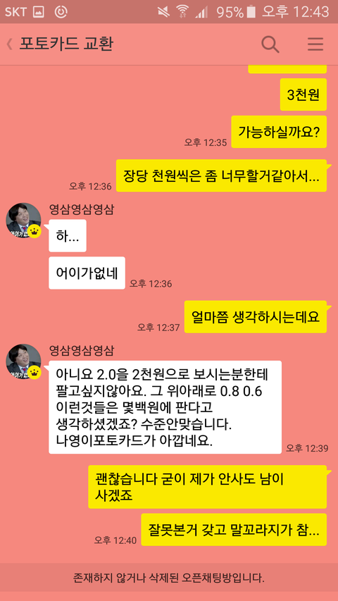 임나영 포카 2.0이라 쓴거만 보고 '엇 2천원인가?'라고 생각해서 판매자한테 연락했는데