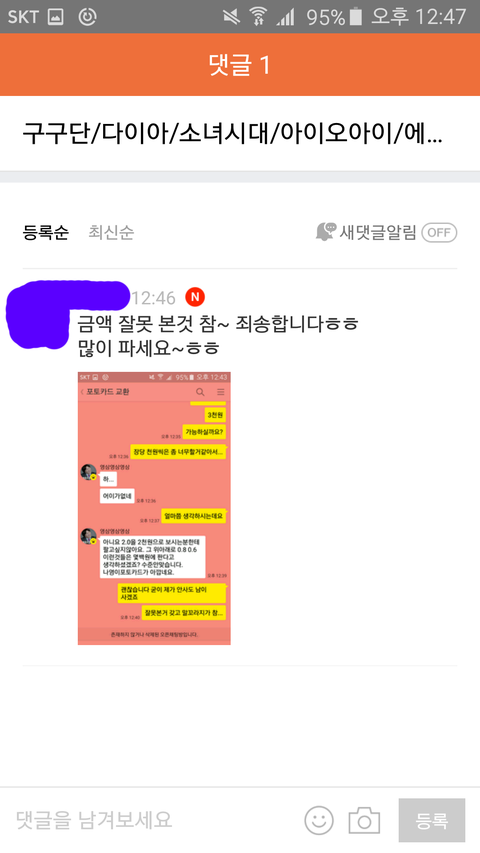 중고나라에서 걸그룹 포카/앨범 판매글 보다