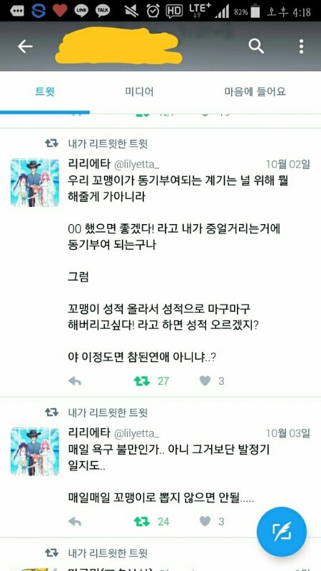 피해자분이 중학생(16살)이신데 꼬맹이 이러면서 나이 낮춰부르고 섹1스 하자고. 강요하고있는 트윗 캡쳐본 가린 거는 캡쳐하신 분 닉넴이야