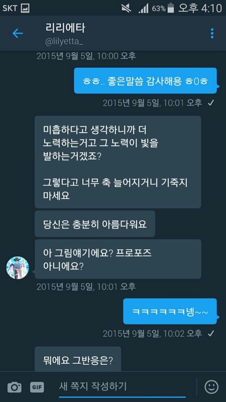 이 사진은 리리에타가 커미션 맡겼을때 커미션작가분에게 성희롱하며 결혼하자 라며 강제로 플러팅 한거야.대화본 더 있는데 사진은 12장까지만 첨부할수있다해서 이것만 넣었는데 다른 사진에서는 더 심해