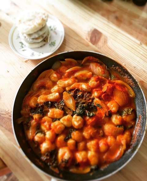토마토와 마늘을 갈아 향신료를 듬뿍 뿌려서 만들었어요..
